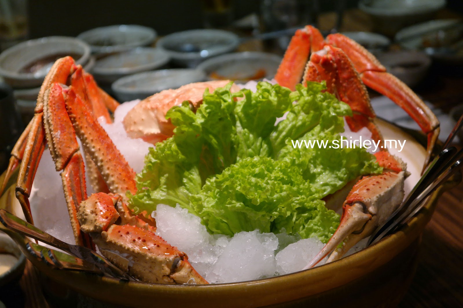 Dishes which are included in this Premium Alaska Set are shown in each photo below. First dish is the Alaska Shabu Shabu. There are crabs, mushrooms, taufu and vegetables in the hot pot. The crab meat is fresh and delicious.